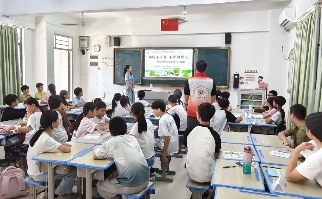 7月15日,河浦街道新时代文明实践所联合广东外语外贸大学S.O.Y.青春颂歌队的同学们在河浦街道河北小学开展“弘扬茶文化 茶香润童心”主题活动。活动现场茶香四溢,志愿者通过生动的故事和图片,向孩子们介绍了茶的起源、种类以及不同地区的饮茶习俗,并且示范了泡茶的基本步骤,从温杯、投茶到注水、出汤,每一个动作都细致讲解。孩子们随后在志愿者的指导下,小心翼翼地拿起茶杯,体验泡茶的乐趣。活动还设置了茶叶辨识、茶文化知识问答等互动环节。孩子们积极举手抢答,在轻松愉快的氛围中加深了对茶文化的了解,不仅感受到了茶文化的独特魅力,拓宽了视野,更在心中播下了传承传统文化的种子。